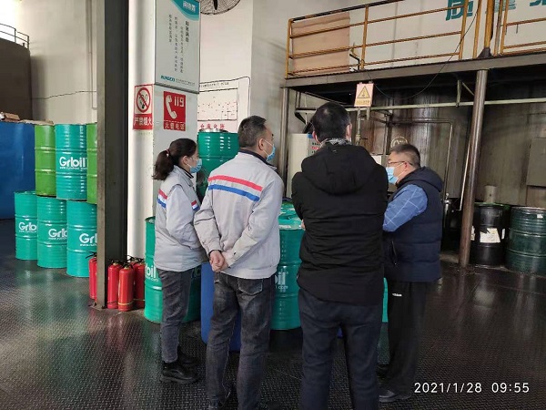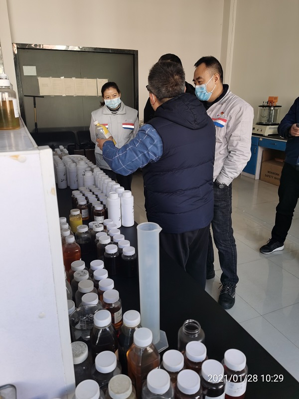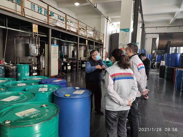 在我司總經理楊洪濤同志的帶領下,神龍公司代表依次參觀了生產車間、質檢化驗室和倉庫。
